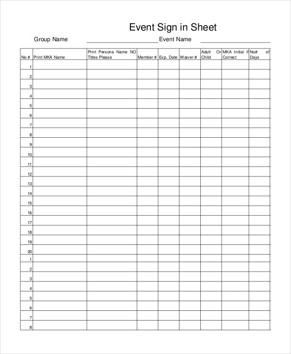 - Keep it brief and concise. Attendees should be able to fill out the sheet quickly and easily.