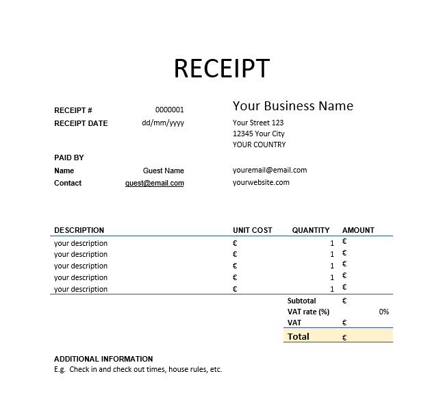 For guests, the benefits are equally compelling. A standardized receipt makes it incredibly easy to reconcile expenses, whether for personal budgeting or corporate reimbursement. All the required information, from itemized charges to payment details, is presented in a predictable format, simplifying the often-tedious process of expense reporting. It also serves as undeniable proof of their stay and payment, which can be invaluable in case of any future queries or disputes.